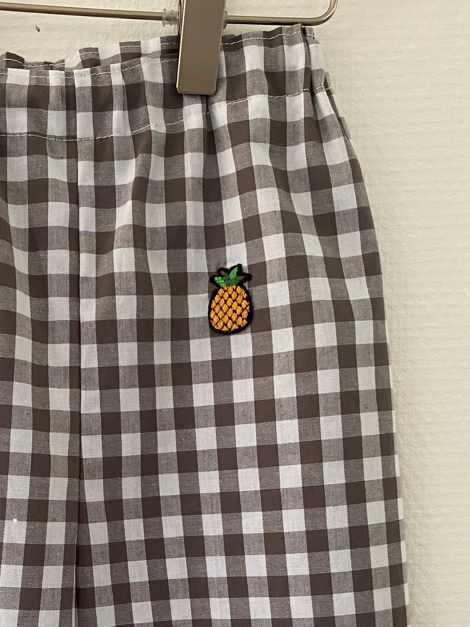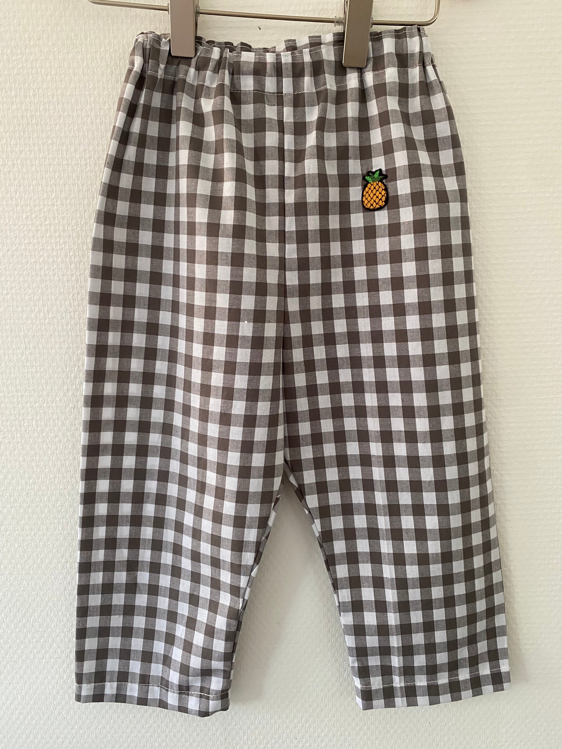 Ternede bukser med en påsyet ananas. Bukserne er behagelige at have på og giver god bevægelsesfrihed, hvilket gør dem ideelle til både hverdag, leg og små eventyr. De kan styles med både bluser, skjorter og strik.