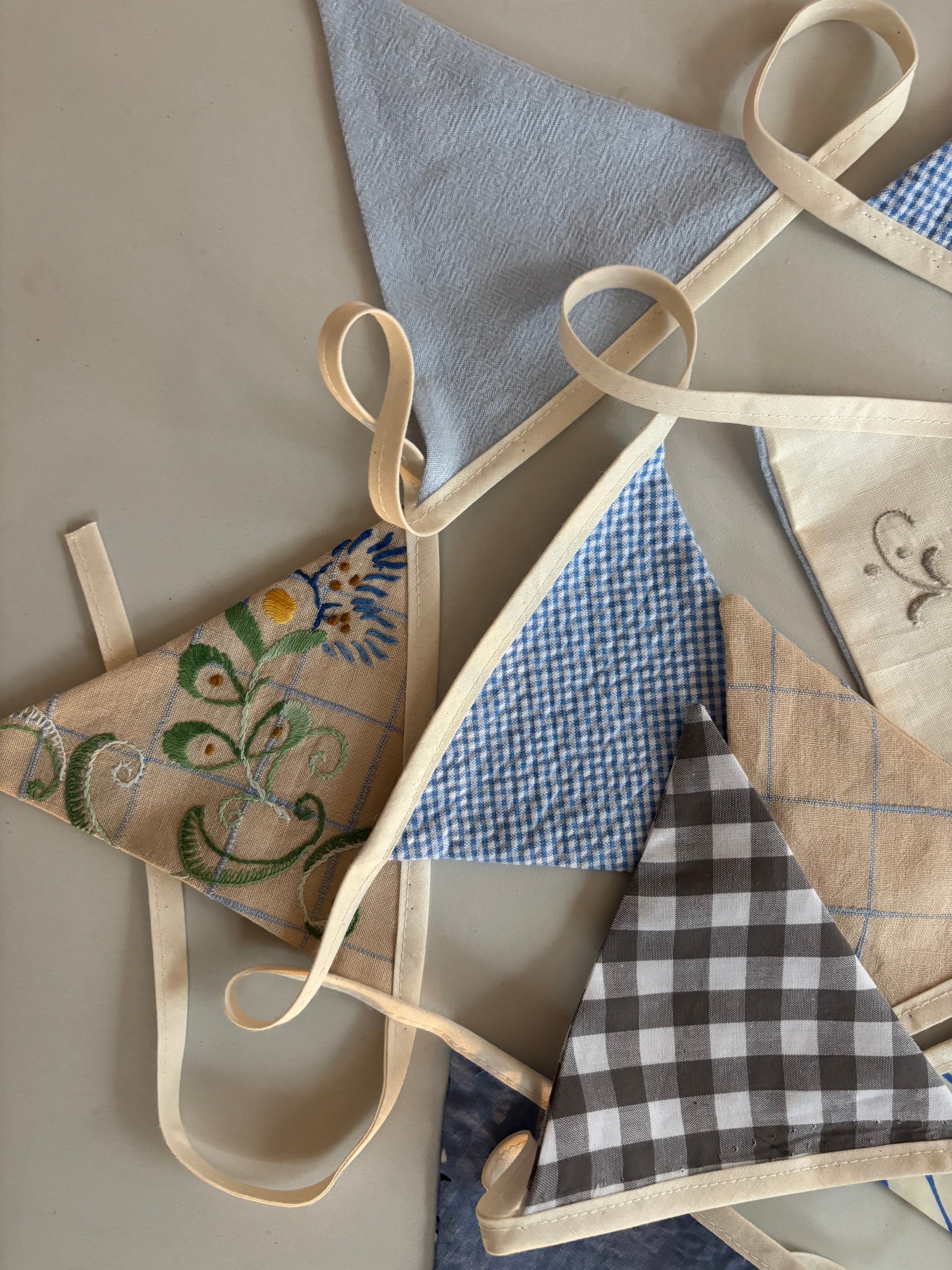 Fin stofvimpel, der tilfører varme og personlighed til børneværelset. Vimplen skaber en hyggelig stemning og er smuk både over børnesengen, ved puslepladsen eller som festpynt